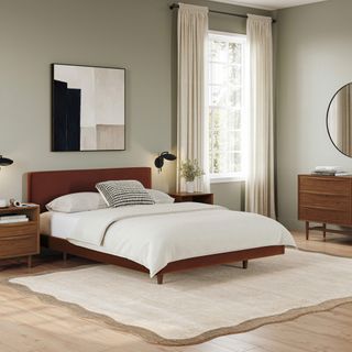 Tessu Queen Low Profile Velvet Bed - Hale Rust