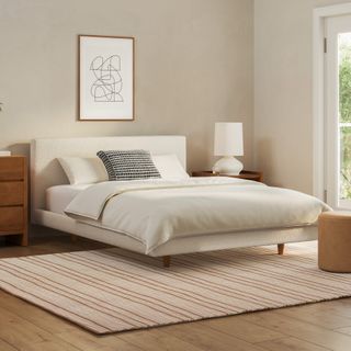 Tessu Queen Low Profile Upholstered Bed - Ivory Wool Bouclé