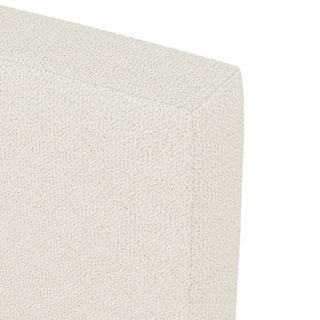 - Upholstered in a soft, non-absorptive bouclé fabric. Bouclé is an excellent choice for those who want an easy-to-care-for, style-forward bed