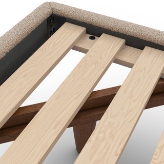 - Upholstered in a soft, non-absorptive bouclé fabric. Bouclé is an excellent choice for those who want an easy-to-care-for, style-forward bed