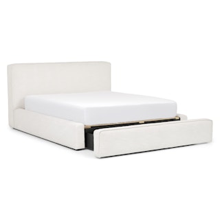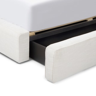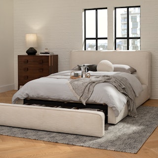 This bed is GORGEOUS! Comfy, cozy. The headboard is thick. I can rest my phone, a book, etc., and it's super soft. The drawer space is large and functional, inc... More