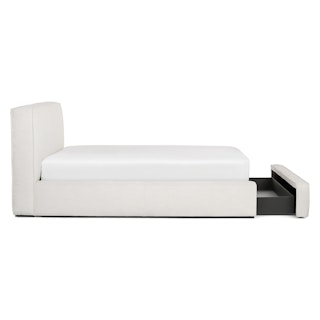 Soft bolstered edges and seam details imbue the Cigar Storage Bed piece with elegance and playfulness. But the real selling point here is the sneaky concealed drawer at its base for stashing your undies, or collection of vintage hankies. Your secret is safe with the Cigar.