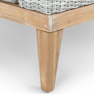 - Constructed of solid acacia wood and durable synthetic wicker