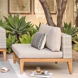 High end, low-profile. This lounger makes for easy conversation: the boxy, solid-acacia design is low to the ground, bringing an oasis-vibe to your poolside. The Urba Lounge Chair was made for artful sprawling. Pass the lemonade.