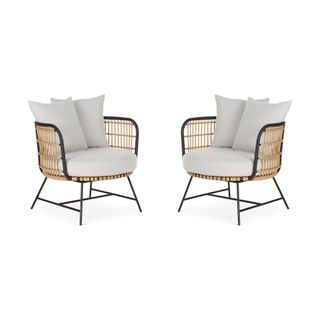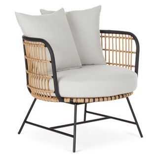 - Powder-coated aluminum and steel frame, with durable synthetic wicker seat, back and armrest support