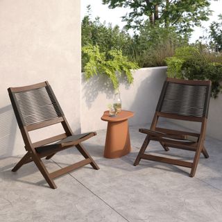 - Solid eucalyptus frame with a woven polypropylene rope seat and backrest