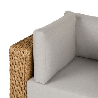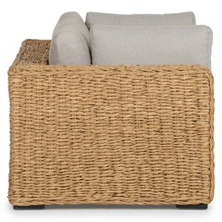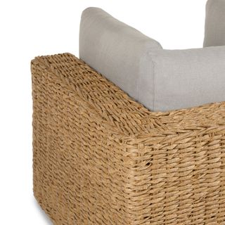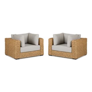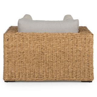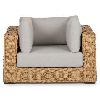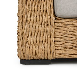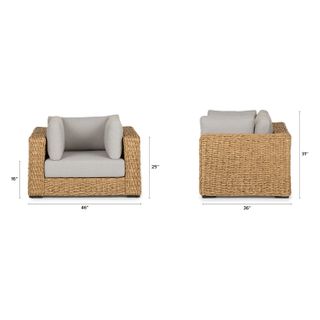 Inviting by nature, the twisted weave of this faux banana leaf wicker lounge chair evokes a coastal calm worthy of all day (or all night) lounging. The Capra chair features a sturdy aluminum base and is generously topped with multiple weather-resistant pillows and a cushion fit for private island-style relaxation.