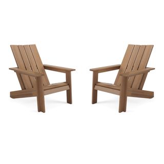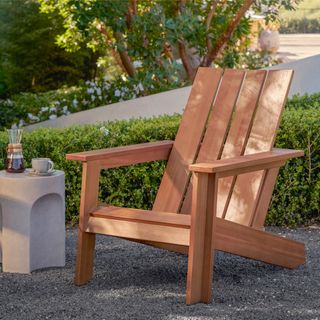 Simple and elegant, the Rena adirondack chair is made from solid eucalyptus wood. This timeless design has been modernized with wide angled planks and dovetail details. Perfect for your fire pit, your deck, or for people-watching on your front porch.