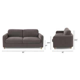 Vati 80" Velvet Sofa Bed - Natural Oak and Hale Warm Gray