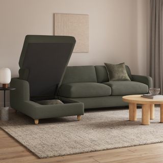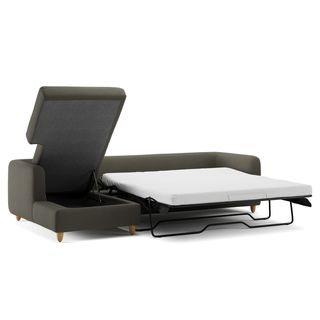 A sectional that can (figuratively) swallow you up... and still have room to store some odds and ends. With its low-profile curvaceous shape and ridiculously cushy cushions, the Vati is such a good-looking sofa you’d hardly know it’s actually a bed and also a treasure chest in disguise. Pop up the chaise seat to reveal a compartment for hiding away your seasonal throw pillows, or a big ol' pile of movie-night blankets. Then, remove the cushions, pull out the memory foam mattress, and voila! Great for when you want a little extra recline or need to house overnight guests. The best part? It’s so inconspicuous, only you get to decide who’s in the know.