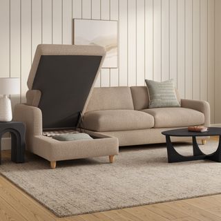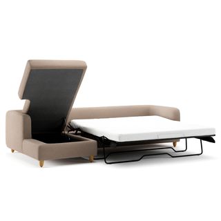 A sectional that can (figuratively) swallow you up... and still have room to store some odds and ends. With its low-profile curvaceous shape and ridiculously cushy cushions, the Vati is such a good-looking sofa you’d hardly know it’s actually a bed and also a treasure chest in disguise. Pop up the chaise seat to reveal a compartment for hiding away your seasonal throw pillows, or a big ol' pile of movie-night blankets. Then, remove the cushions, pull out the memory foam mattress, and voila! Great for when you want a little extra recline or need to house overnight guests. The best part? It’s so inconspicuous, only you get to decide who’s in the know.
