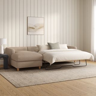 Vati 114" Left Storage Sleeper Sectional - Sandstone Wool Bouclé