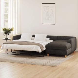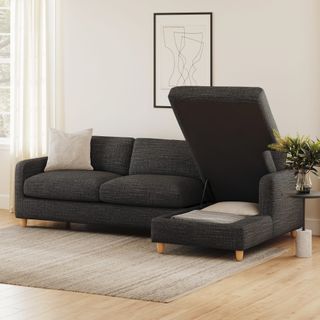 A sectional that can (figuratively) swallow you up... and still have room to store some odds and ends. With its low-profile curvaceous shape and ridiculously cushy cushions, the Vati is such a good-looking sofa you’d hardly know it’s actually a bed and also a treasure chest in disguise. Pop up the chaise seat to reveal a compartment for hiding away your seasonal throw pillows, or a big ol' pile of movie-night blankets. Then, remove the cushions, pull out the memory foam mattress, and voila! Great for when you want a little extra recline or need to house overnight guests. The best part? It’s so inconspicuous, only you get to decide who’s in the know.