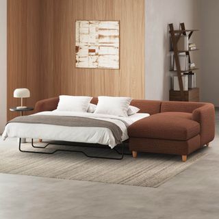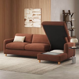 A sectional that can (figuratively) swallow you up... and still have room to store some odds and ends. With its low-profile curvaceous shape and ridiculously cushy cushions, the Vati is such a good-looking sofa you’d hardly know it’s actually a bed and also a treasure chest in disguise. Pop up the chaise seat to reveal a compartment for hiding away your seasonal throw pillows, or a big ol' pile of movie-night blankets. Then, remove the cushions, pull out the memory foam mattress, and voila! Great for when you want a little extra recline or need to house overnight guests. The best part? It’s so inconspicuous, only you get to decide who’s in the know.