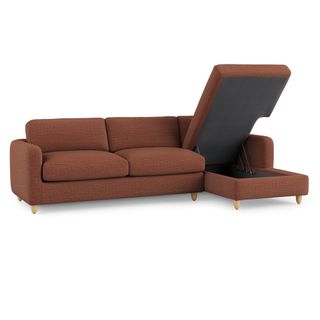 Vati 114" Right Storage Sleeper Sectional - Natural Oak and Napa Rust