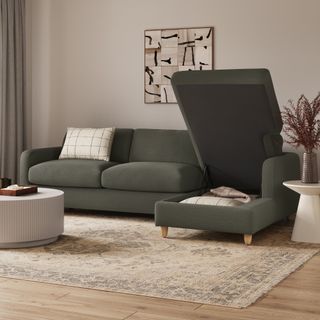 A sectional that can (figuratively) swallow you up... and still have room to store some odds and ends. With its low-profile curvaceous shape and ridiculously cushy cushions, the Vati is such a good-looking sofa you’d hardly know it’s actually a bed and also a treasure chest in disguise. Pop up the chaise seat to reveal a compartment for hiding away your seasonal throw pillows, or a big ol' pile of movie-night blankets. Then, remove the cushions, pull out the memory foam mattress, and voila! Great for when you want a little extra recline or need to house overnight guests. The best part? It’s so inconspicuous, only you get to decide who’s in the know.