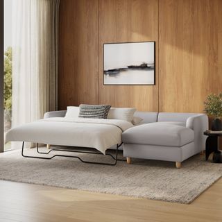 A sectional that can (figuratively) swallow you up... and still have room to store some odds and ends. With its low-profile curvaceous shape and ridiculously cushy cushions, the Vati is such a good-looking sofa you’d hardly know it’s actually a bed and also a treasure chest in disguise. Pop up the chaise seat to reveal a compartment for hiding away your seasonal throw pillows, or a big ol' pile of movie-night blankets. Then, remove the cushions, pull out the memory foam mattress, and voila! Great for when you want a little extra recline or need to house overnight guests. The best part? It’s so inconspicuous, only you get to decide who’s in the know.