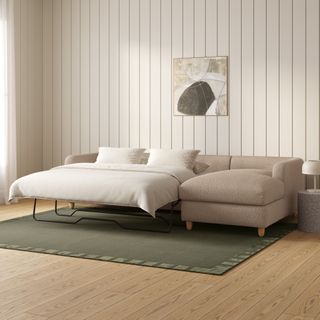 Vati 114" Right Storage Sleeper Sectional - Sandstone Wool Bouclé