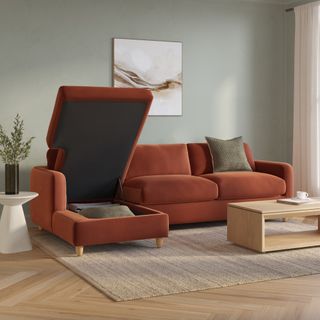 Vati 114" Velvet Left Storage Sleeper Sectional - Hale Rust