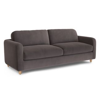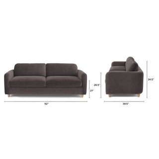 Vati 92" Velvet Sofa - Natural Oak and Hale Warm Gray