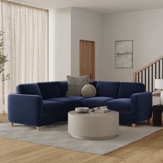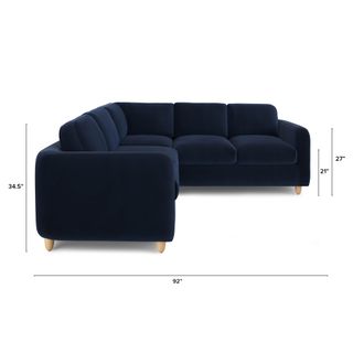 Vati 92" Velvet Corner Sectional - Natural Oak and Hale Ink