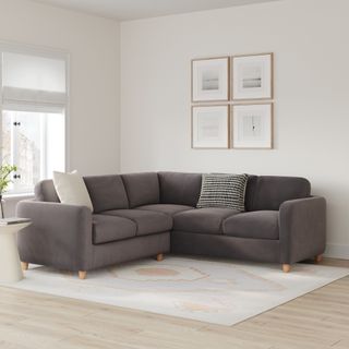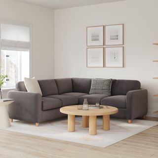 Vati 92" Velvet Corner Sectional - Natural Oak and Hale Warm Gray