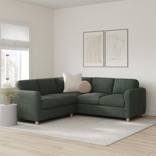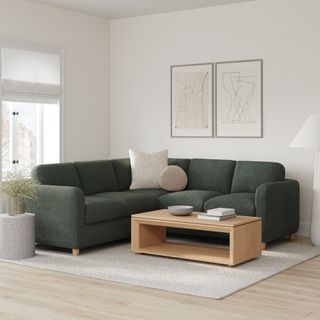 Vati 92" Corner Sectional - Natural Oak and Green Wool Bouclé