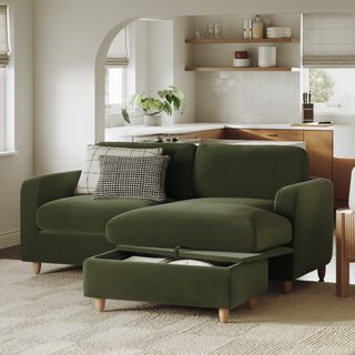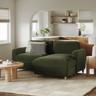 Vati 80" Velvet Right Storage Sectional - Natural Oak and Hale Fir Green