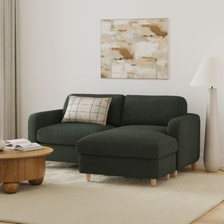 Vati 80" Right Storage Sectional - Natural Oak and Green Wool Bouclé