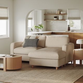 Vati 80" Right Storage Sectional - Natural Oak and Ivory Wool Bouclé