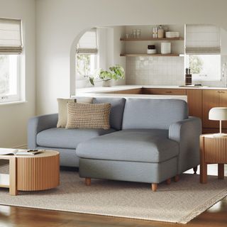 Vati 80" Right Storage Sectional - Natural Oak and Silver Light Blue