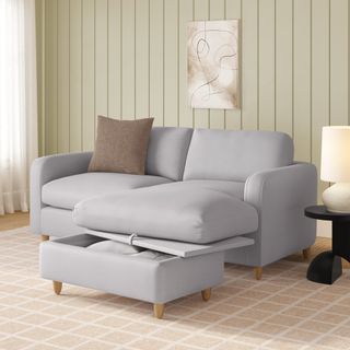 - Ottoman storage accessible by lifting the hydraulic-assisted chaise cushion