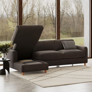 - Ottoman storage accessible by lifting the hydraulic-assisted chaise cushion