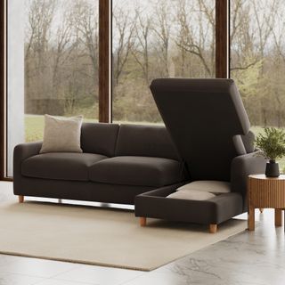 - Ottoman storage accessible by lifting the hydraulic-assisted chaise cushion