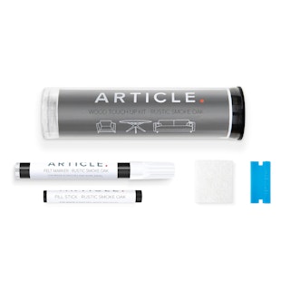 - Includes one wax-based fill stick, one felt marker, one abrasive pad, and one plastic putty knife
